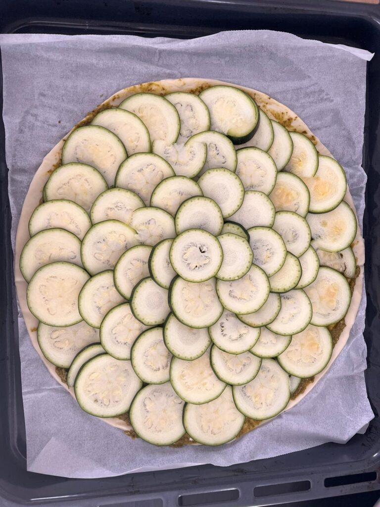 Coupez les courgettes et déposez-les dans la pâte en formant des cercles.